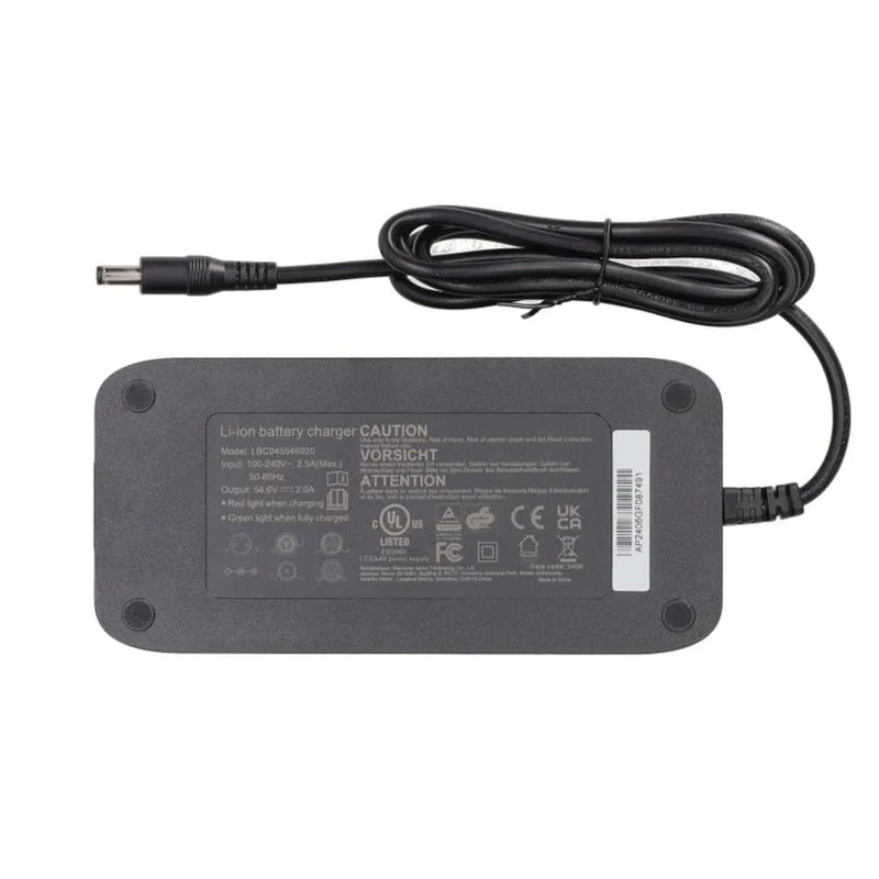 Deze originele OUXI oplader is speciaal ontworpen voor de OUXI V8, V8 Max en H9 fatbikes. Met een output van 54,6V en 2A is deze oplader geschikt voor 48V lithium-ion batterijen en zorgt voor een efficiënte en veilige laadtijd van ongeveer 4–6 uur, afhankelijk van de accucapaciteit.