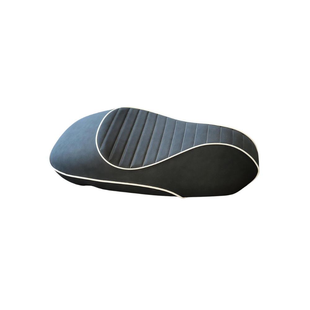 Origineel zadel voor de speciale Vespa Sprint. Dit zadel is uitgevoerd in het zwart met een witte bies.
